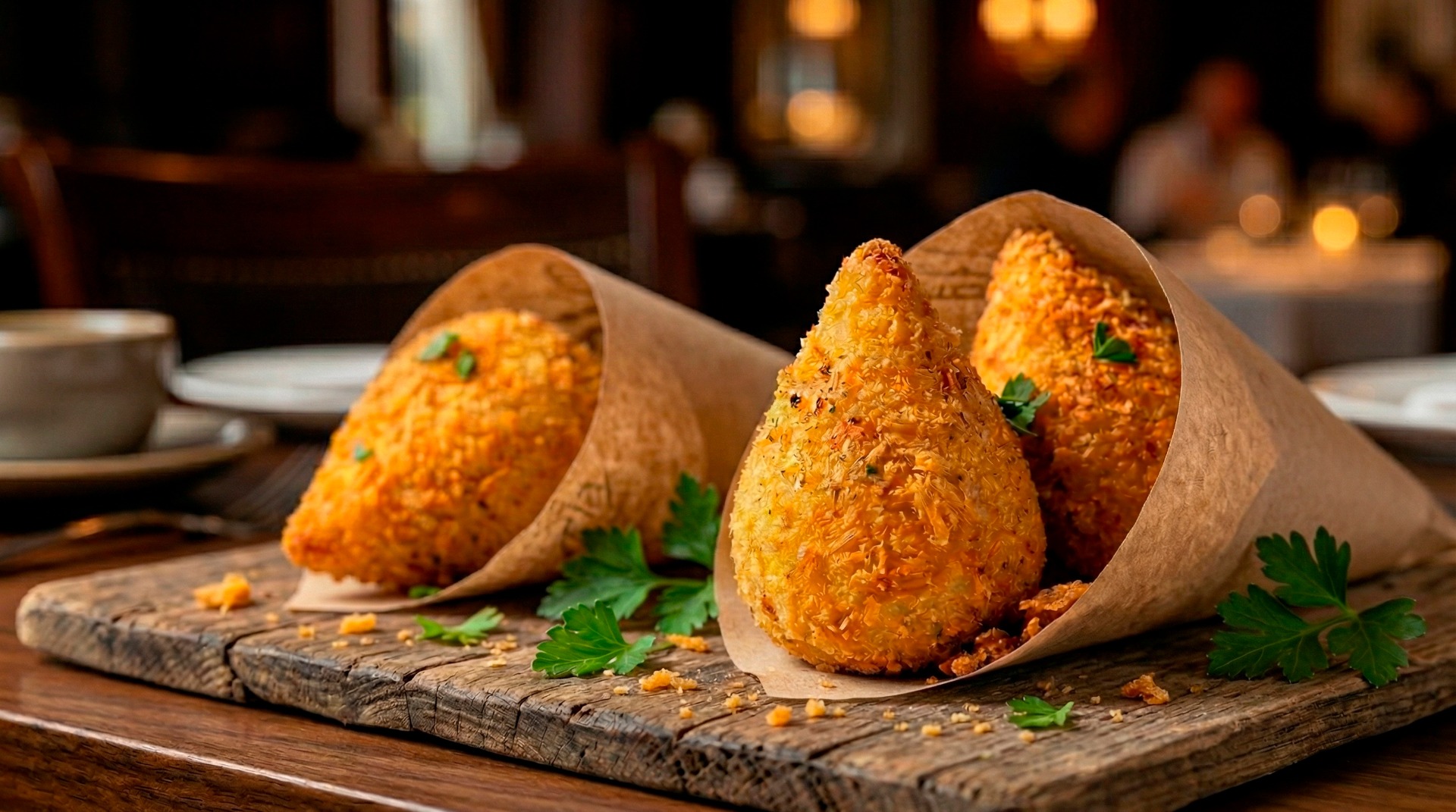 Massa à base de trigo, água e manteiga,para uma textura macia e sabor equilibrado. O recheio das coxinhas é preparado com frango desfiado, ervas e especiarias selecionadas