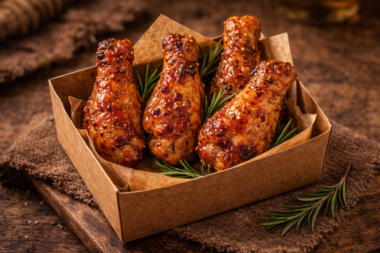 Perninhas de frango assadas, temperadas com alho, ervas aromáticas e leve toque de especiarias. Finalizadas até ficarem douradas, suculentas e com sabor incrívelmente marcante.